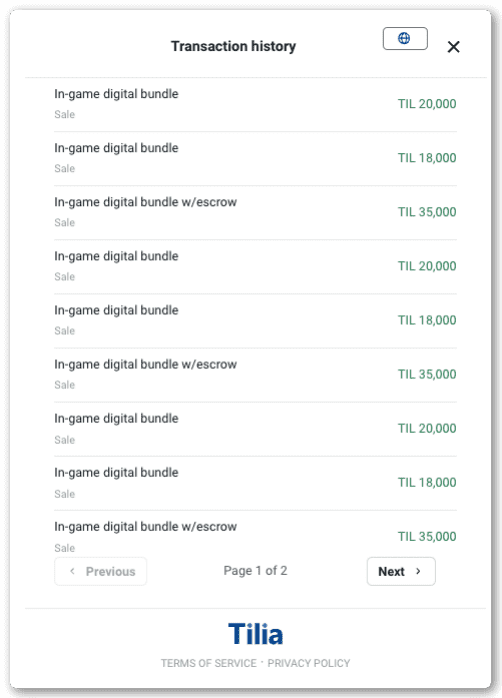 In this tutorial, you get information about a user's transaction history and specific transactions by using the Tilia API and Tilia UI widgets.